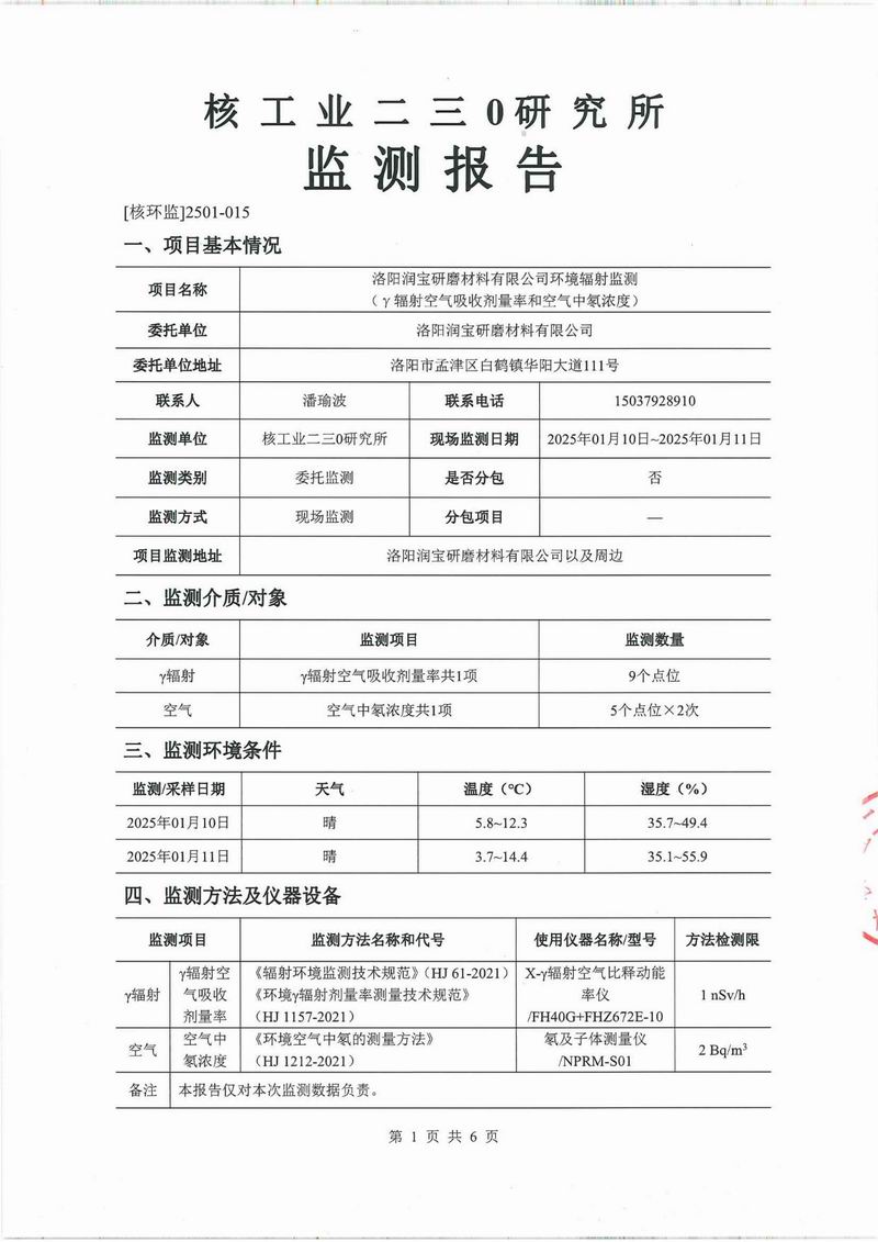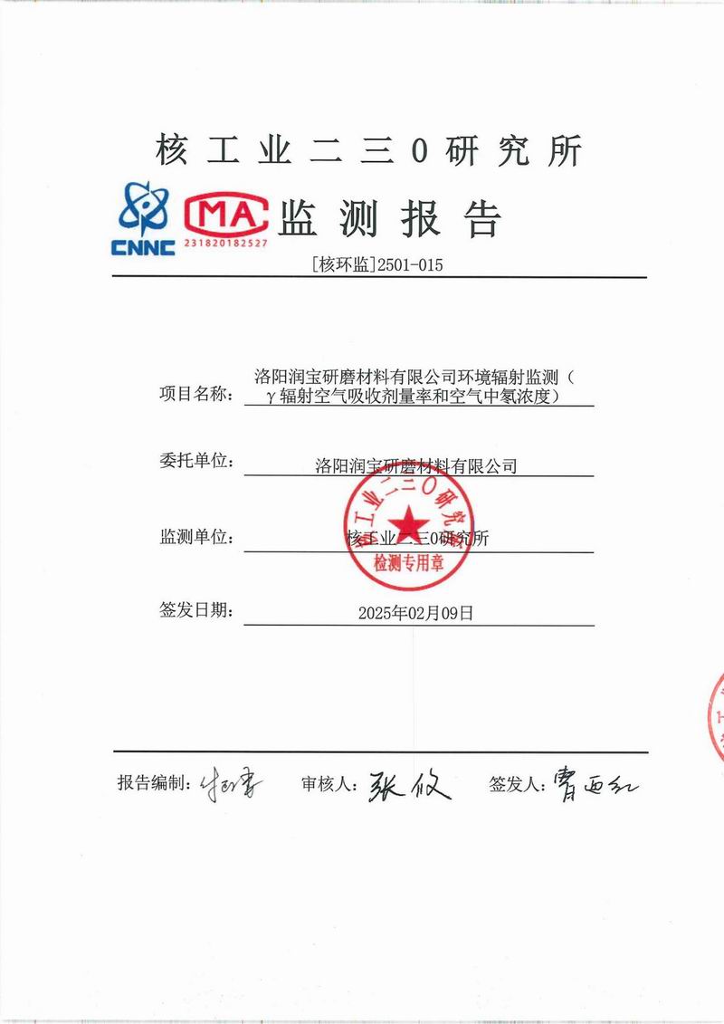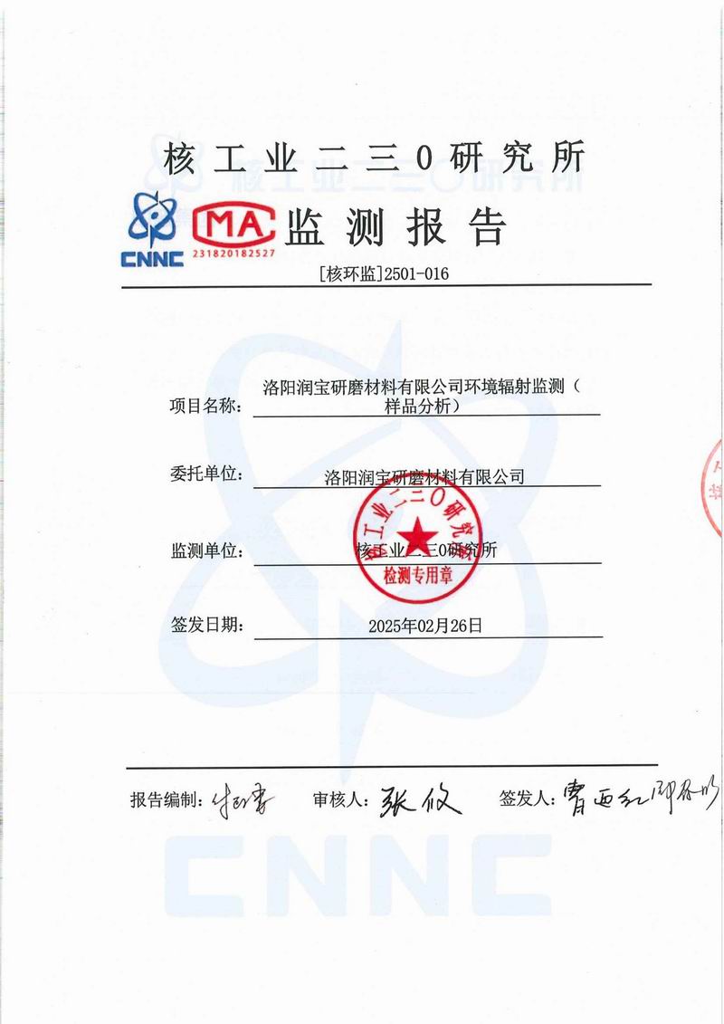 環(huán)保輻射年度報(bào)告 時(shí)間:2025-03-03點(diǎn)擊量:1638 上一篇:環(huán)境輻射監(jiān)測(cè)報(bào)告 下一篇:洛陽(yáng)潤(rùn)寶研磨材料有限公司環(huán)境輻射監(jiān)測(cè)報(bào)告