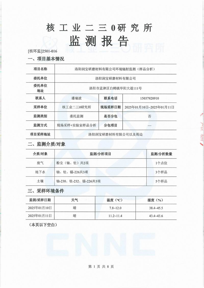 洛陽(yáng)潤(rùn)寶研磨材料有限公司環(huán)境輻射監(jiān)測(cè)報(bào)告